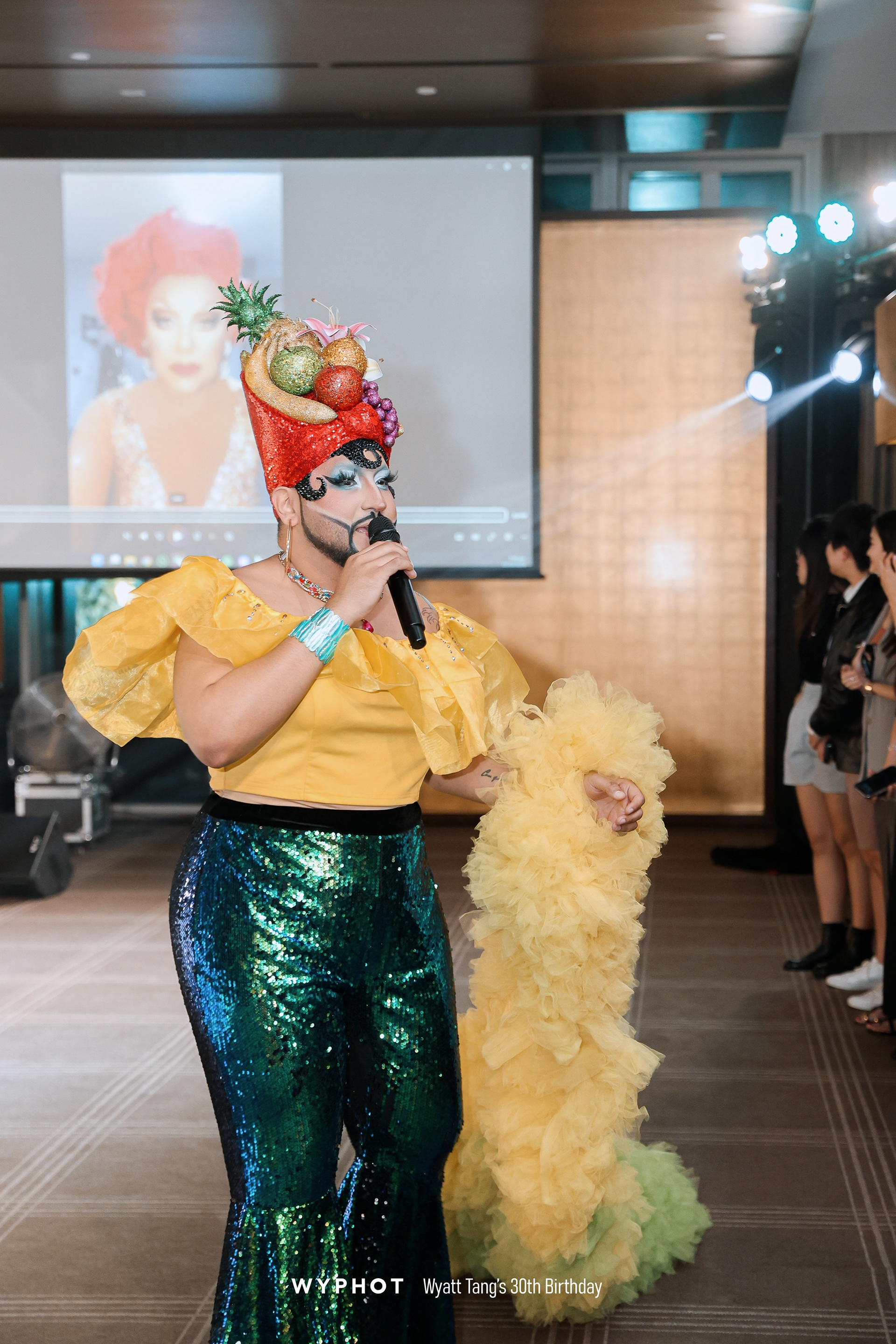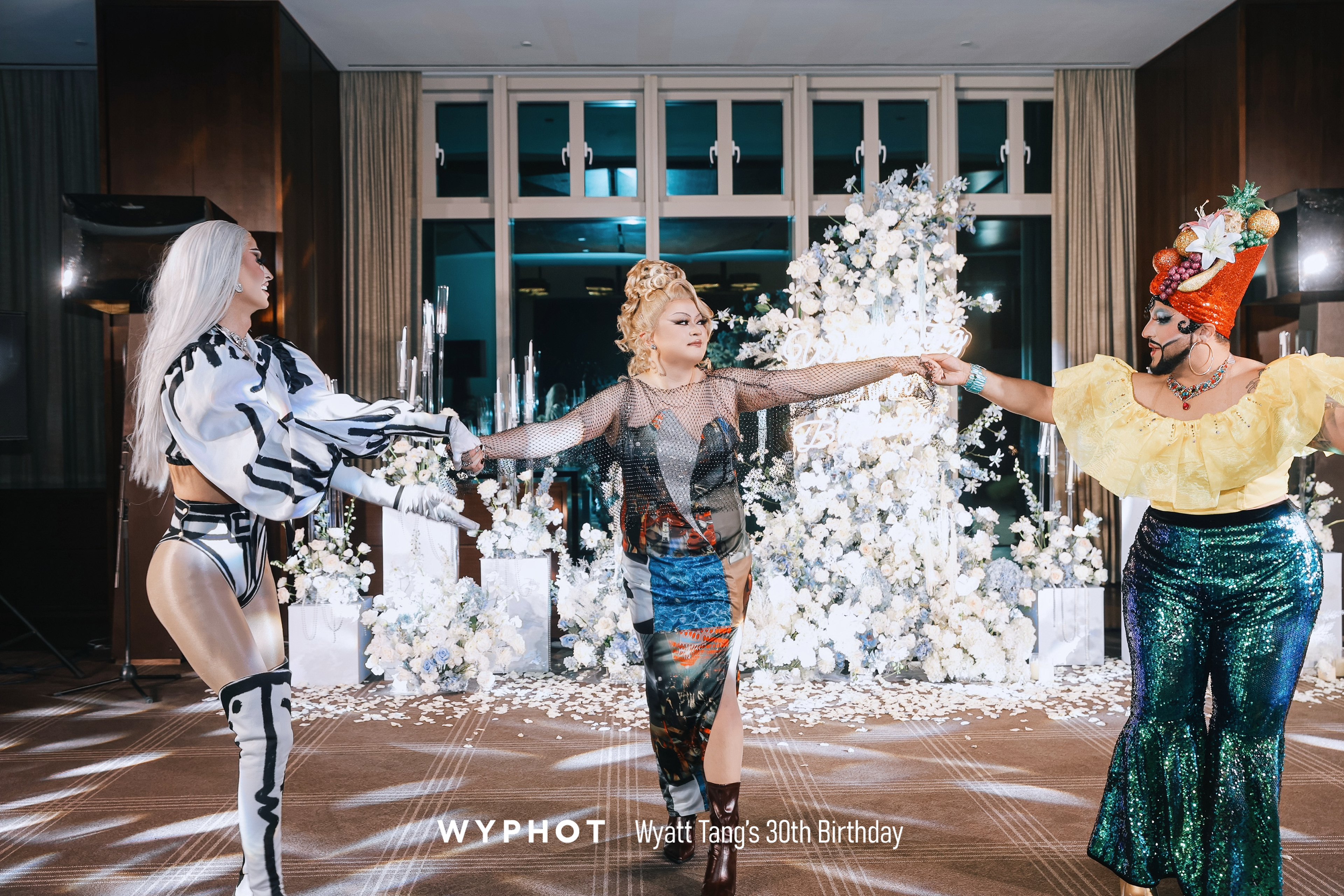 Wyatt Tang’s 30th birthday party featured stunning drag performances by Simo Sace, one of Guangzhou’s finest, and Cocosanti, a highly talented drag queen from Shanghai. With their expertise, Wyatt made his long-awaited debut as Drag Queen TANGY.